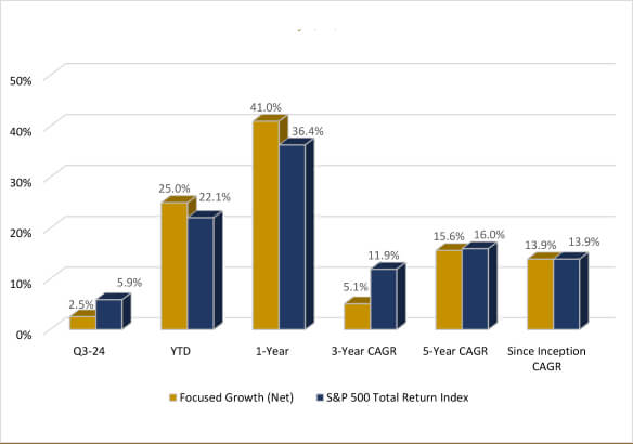 The Focused Growth Strategy is designed to deliver superior long-term returns by adhering to a simple, but proven investment philosophy. We believe that over the long-term stock prices will follow earnings growth. We buy high quality companies in attractive industries that possess long-term secular growth opportunities greater than that of the broader market.